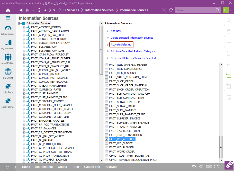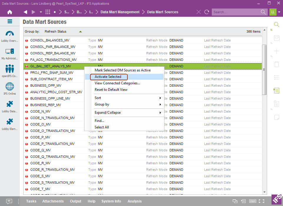 Information Source access based on Materialized Views is not a common source when setting up the BI Analysis Package. The disadvantage with Materialized Views is that the IFS implementation only supports complete/full refresh.