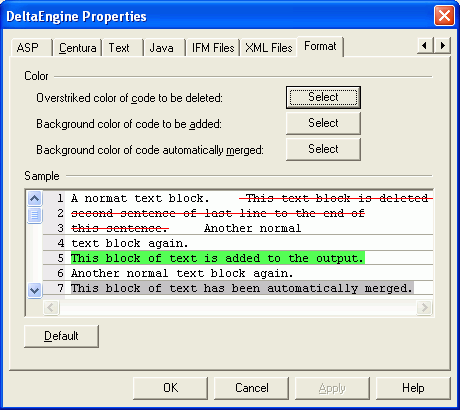 The format tab allows you to change the color-coding used in Merged Output, Manual Mode and the Delta Report.