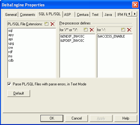 Use this tab to define file extensions to be handled by the Sql & Pl/Sql parser.
